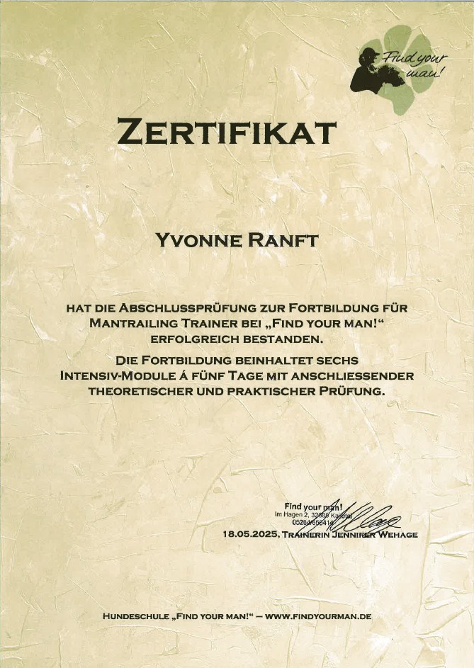 Hundetrainerin, Hundeerzieherin und Verhaltensberaterin (IHK-Zertifikat)
